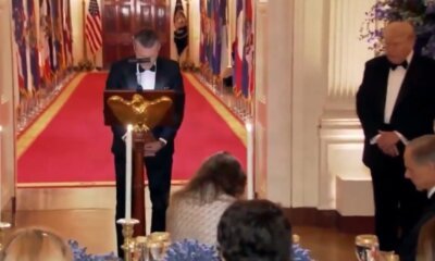 President Trump and First Lady Melania participated in a Governors Dinner in the East Room of the White House on Saturday night. President Trump wore a...