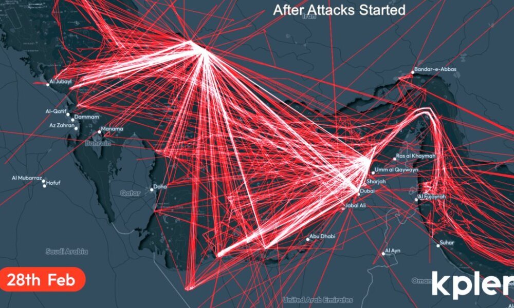 Bottlenecked ships anchored outside Straight of Hormuz. Ships travel the seas using the Automatic Identification System (AIS). It’s a satellite tracking system that uses transponders to...