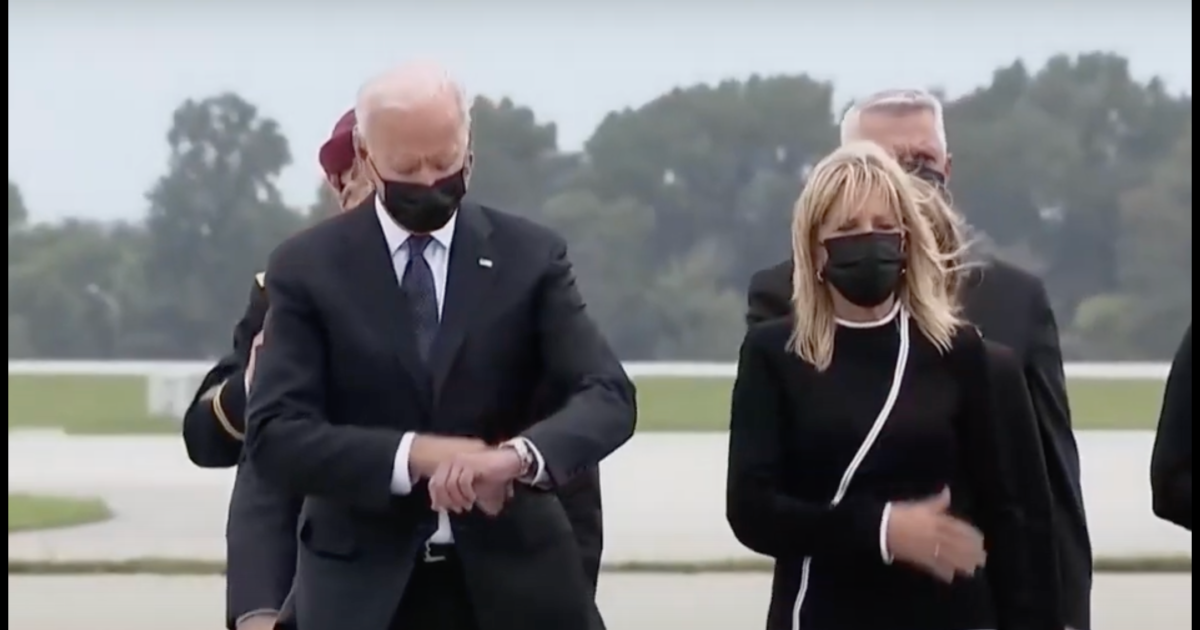 Exactly when CNN is talking about how difficult it must be for Biden to watch the dignified transfer of our fallen soldiers, Biden checks his watch. pic.twitter.com/3R53ak7yEd